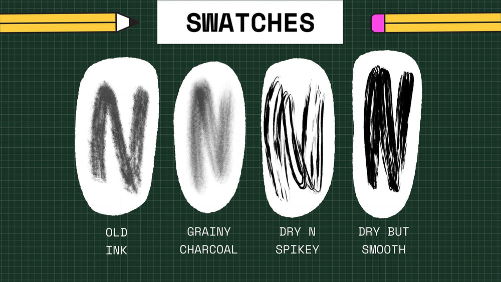 Grainy Charcoal: A brush that combines the texture of charcoal with the fluidity of ink, giving your strokes a grainy, tactile quality.